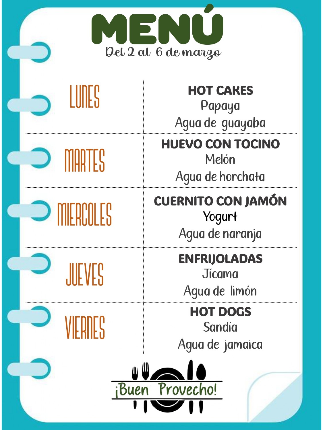 Menú del 02 al 06 de marzo